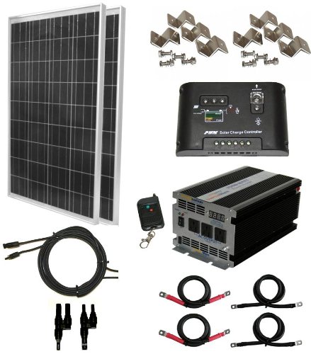 Via: Complete 200 Watt Solar Panel Kit with 1500W VertaMax Power Inverter for RV, Boat, Off-Grid 12 Volt Battery Systems