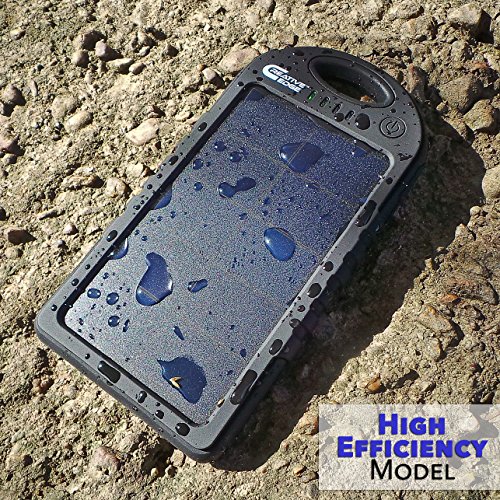 Via: Solar Charger – Creative Edge(TM) Solar-5+ High Efficiency Solar Panel 5000mAh Water/ Shock/ Dust Resistant Portable Power Bank Dual USB output, Fits most USB-charged devices (Lightning Adapter Incld)