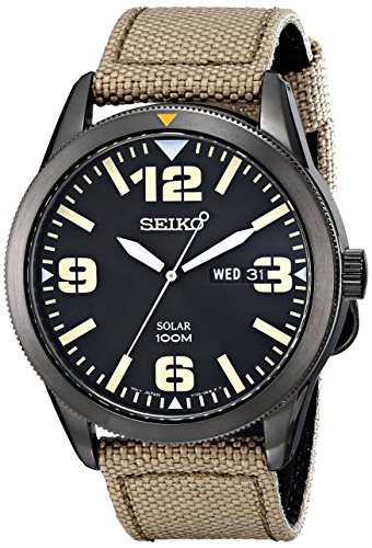 Via: Seiko Men’s SNE331 Sport Solar Analog Display Japanese Quartz Beige Watch