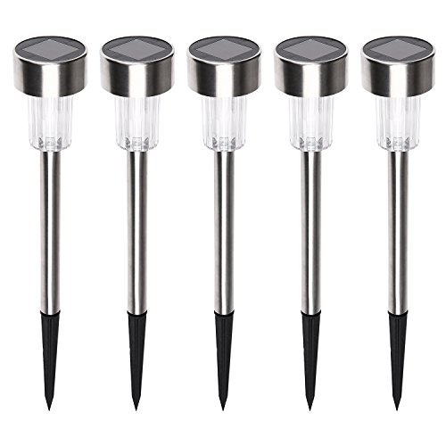 Via: 5 Pack Solar Power Path Lights LED Garden Stake Light Lawn White Stainless Steel Spot Lamp for Garden Outdoor Landscape Yard