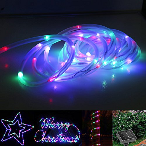 Via: LE® 16.5ft LED RGB Solar Rope Lights, Waterproof, 50 LEDs, Red/Green/Blue, 1.2 V, Multi-color, Portable, with Light Sensor, Outdoor Rope Lights, Ideal for Christmas, Wedding, Party