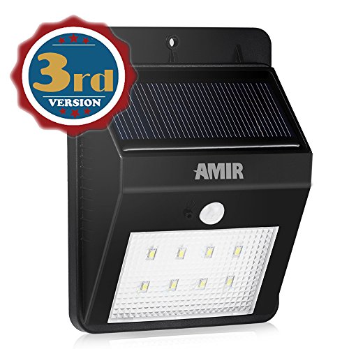 Via: Solar Lights, Amir® Solar Energy Powered Outdoor Bright Light- Waterproof – Motion Sensor-Detector Activated /Dusk to Dawn Dark Sensing Auto On/Off, LED light For Patio,Deck,Yard,Home,Driveway,Stairs
