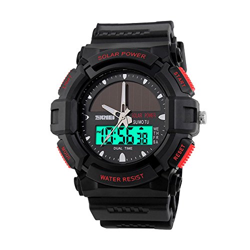 Via: Vich Shock Resist Waterpoof Solar Energy 2 time Zone Men Sports Watches-Red Dial